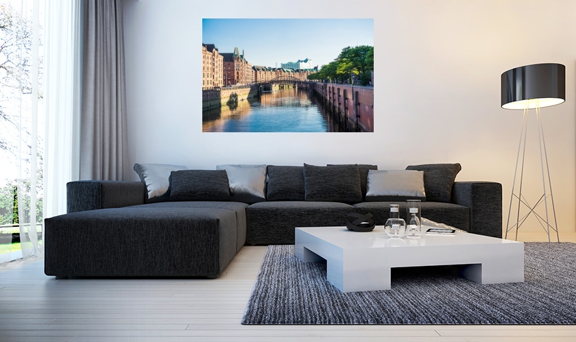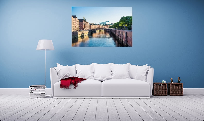 Der echte hochauflösende Foto-Abzug auf Alu-Dibond ist rahmenlos, leicht und formstabil. Das Motiv wird direkt auf eine edle Aluminium-Platte kaschiert und oberflächenschutzlaminiert. Inkl. Wandhalterung.